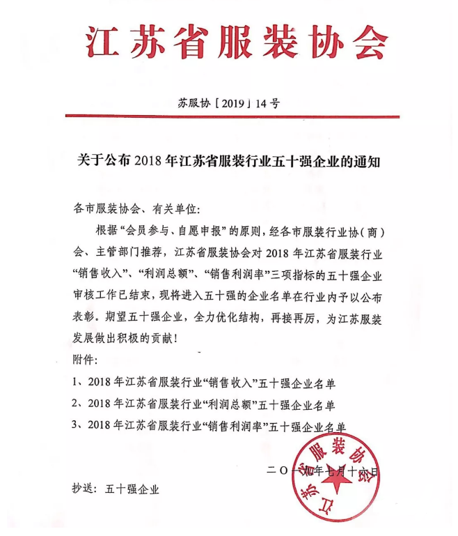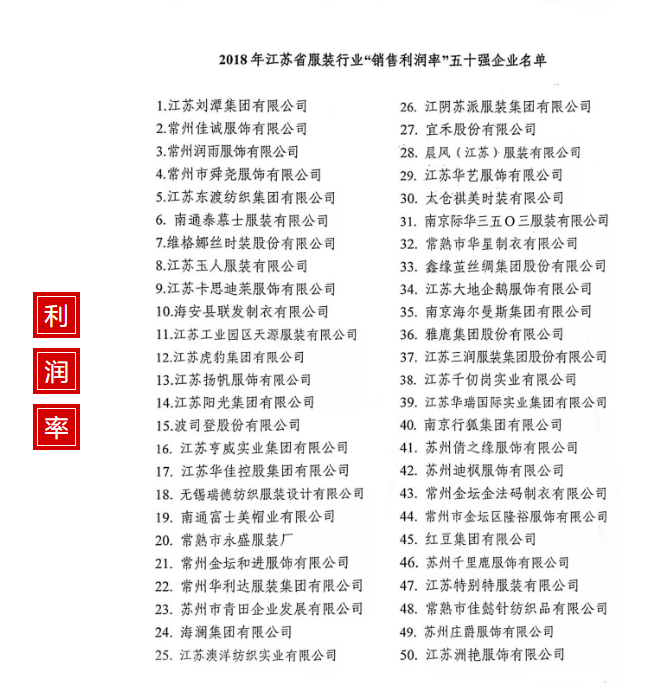 2018年江蘇省服裝行業(yè)五十強(qiáng)新鮮出爐啦