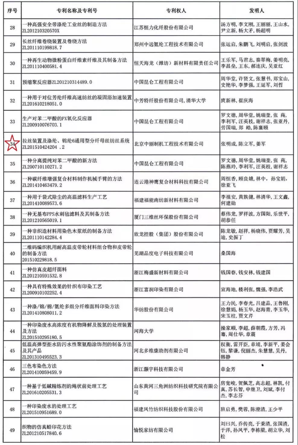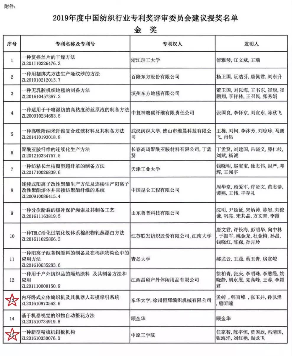 2019年度中國紡織行業(yè)專利獎(jiǎng)建議授獎(jiǎng)名單(紡機(jī)類)